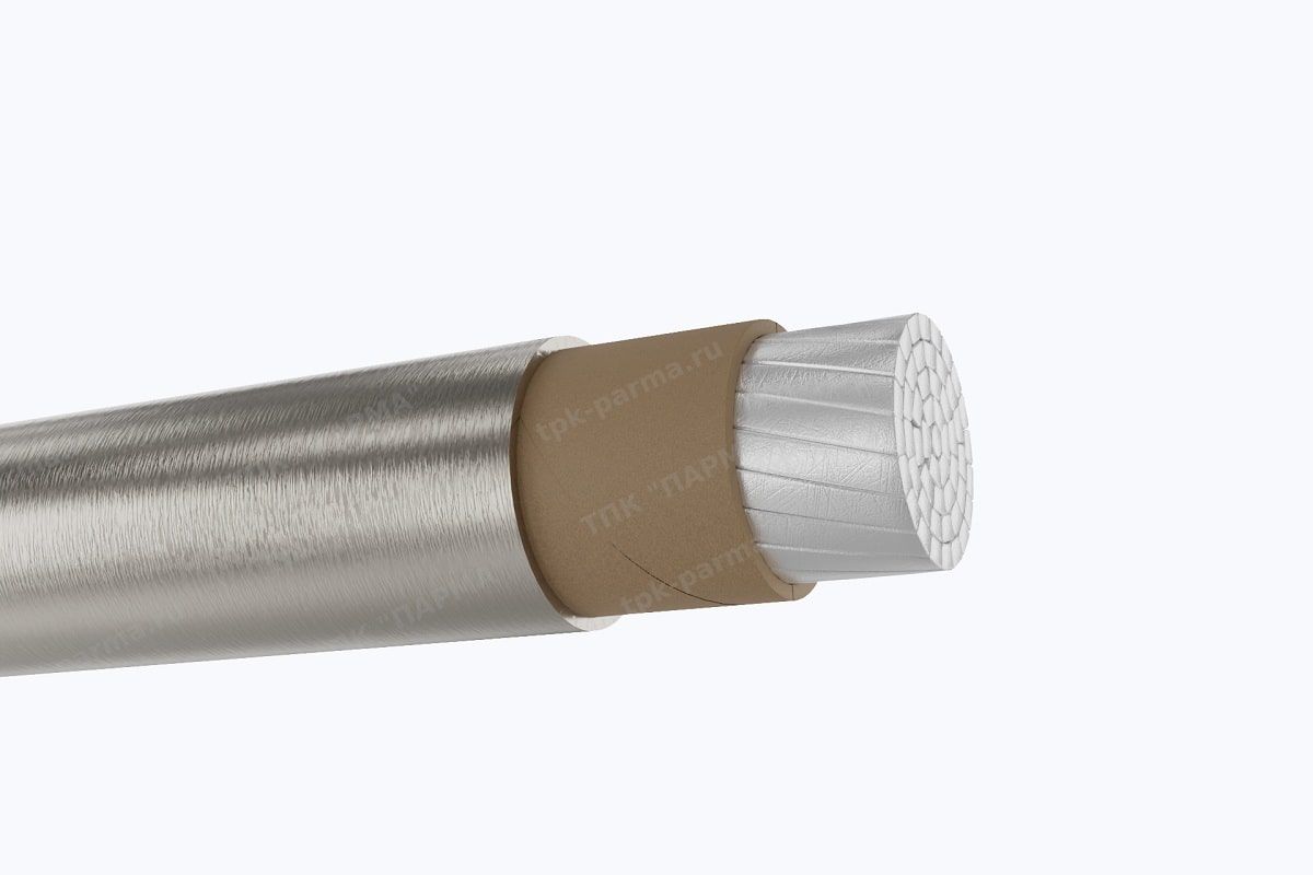 1. Три круглые однопроволочные алюминиевые токопроводящие жилы с площадью номинального поперечного сечения 16 мм2,